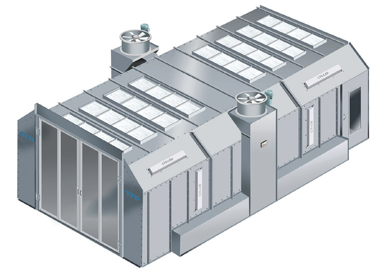The side downdraft spray paint booth is commonly utilized in a wide variety of applications. Among many others, this includes the aerospace and defense, automotive, manufacturing and industrial, heavy equipment, fleet refinishing, marine and transit and rail sectors. In the particular case of aircraft finishing, this solution is very popular due to its effective heat dispersion and superior overspray containment capabilities by providing sufficient airflow in large spaces. As for large equipment, the side downdraft unit is an excellent solution for accessing all the benefits of a full downdraft unit without having to construct a pit system rated for heavy equipment. Iin the automotive refinishing industry, it is a popular option for smaller refinishing shops where an exhaust pit isn’t practical due to the location of the paint shop.
